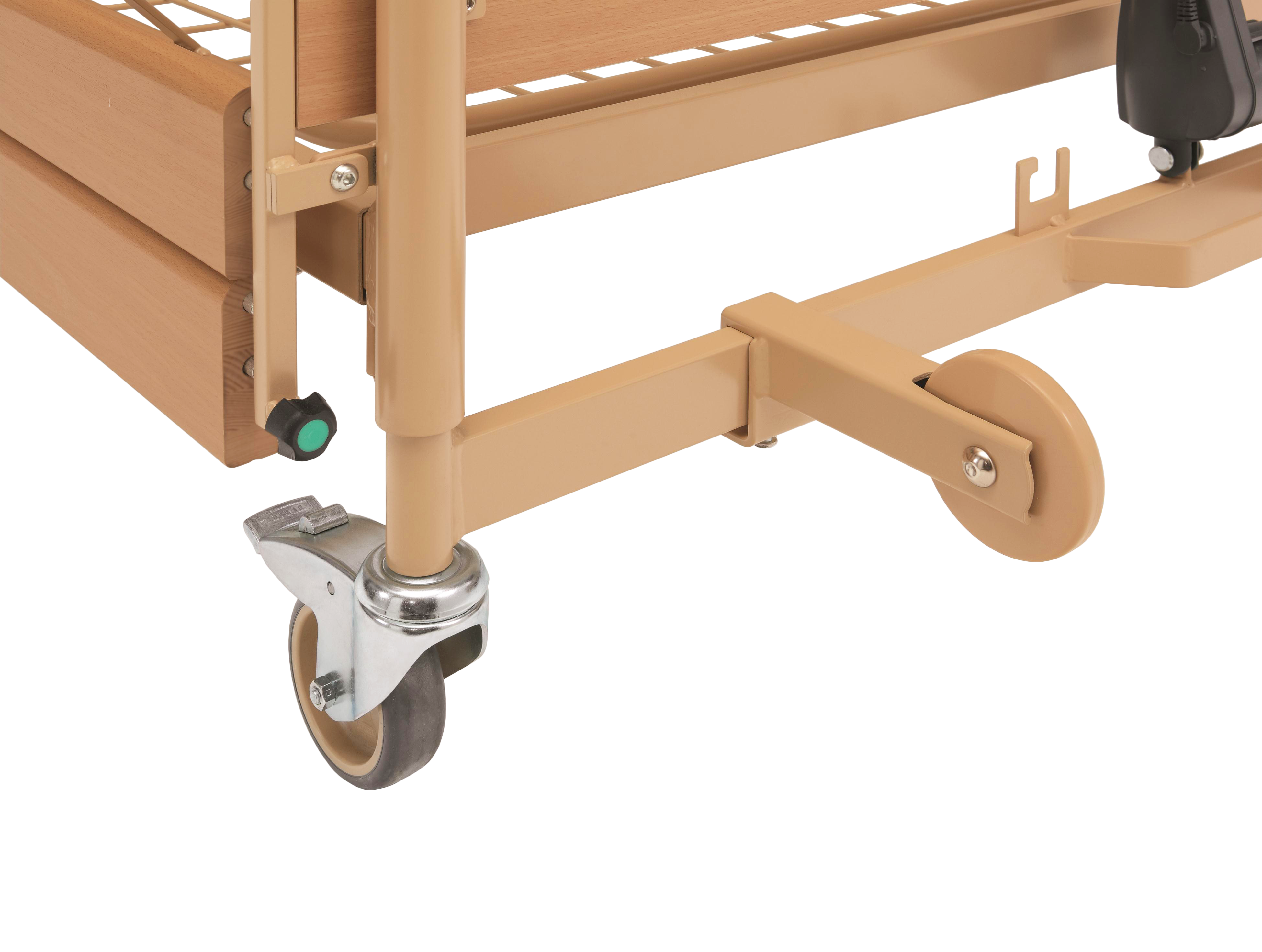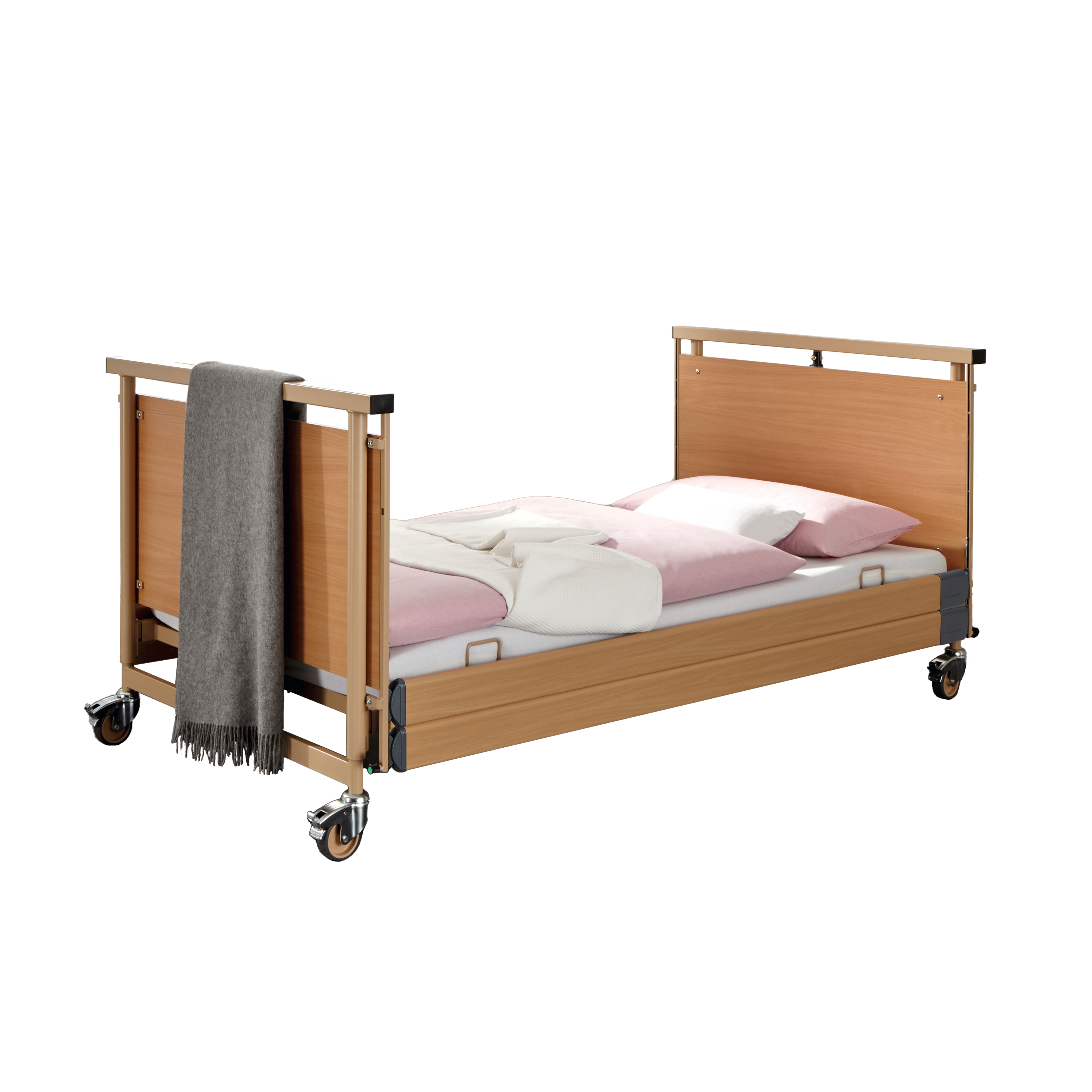 Lovos konstrukcija pagaminta iš metalinių dažytų profilių. Gulimasis paviršius metalinis, sudarytas iš keturių dalių, su laikikliais čiužiniui. Lovos aukštis, nugaros ir šlaunų atramų kampai reguliuojami elektriniu būdu. Lovos funkcijos valdomos pultelio pagalba su galimybe blokuoti pasirinktas funkcijas. Ilgas laidas užtikrina patogų pultelio naudojimą iš bet kurios lovos pusės. Lovos galai pagaminti iš laminuotos medžių drožlės plokštės. Lovos medinės dalys buko spalvos. Lovos ratukai 100 mm skersmens su individualiais stabdžiais. Galvūgalyje yra specialios kišenės pasikėlimo rankenai įstatyti. Lova yra paprastos ir patikimos konstrukcijos, surenkama greitai ir be įrankių pagalbos. Lova komplektuojama su nuleidžiamais mediniais šoniniais turėklais iš abiejų lovos pusių ir pasikėlimo rankena.