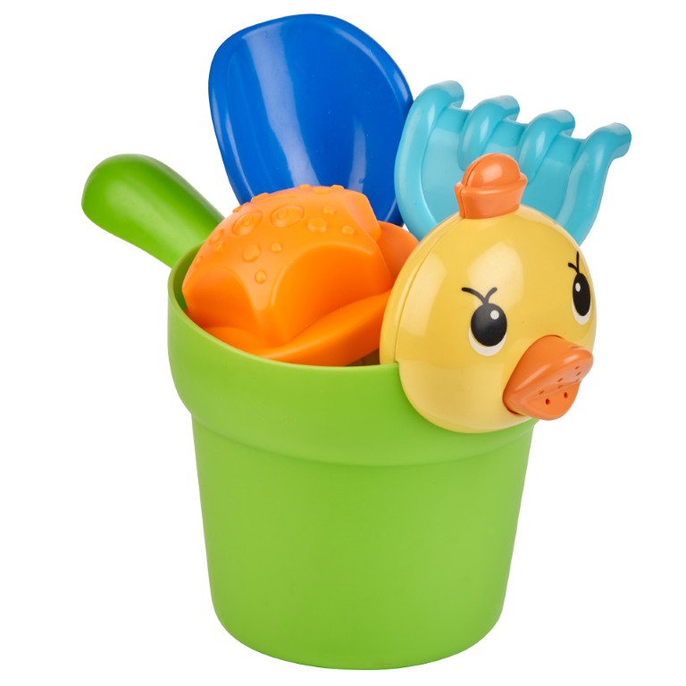 Paplūdimio žaislų rinkinys. Rinkinį sudaro 6 žaislai - 2 vnt smėlio formelių, 1 vnt kastuvėlis, 1 vnt grėbliukas, 1 vnt laistytuvas, 1 vnt kibirėlis. Išmatavimai: 18cm x 20cm.LAISVALAIKIS, PAPLŪDIMIUISK-640BE95030